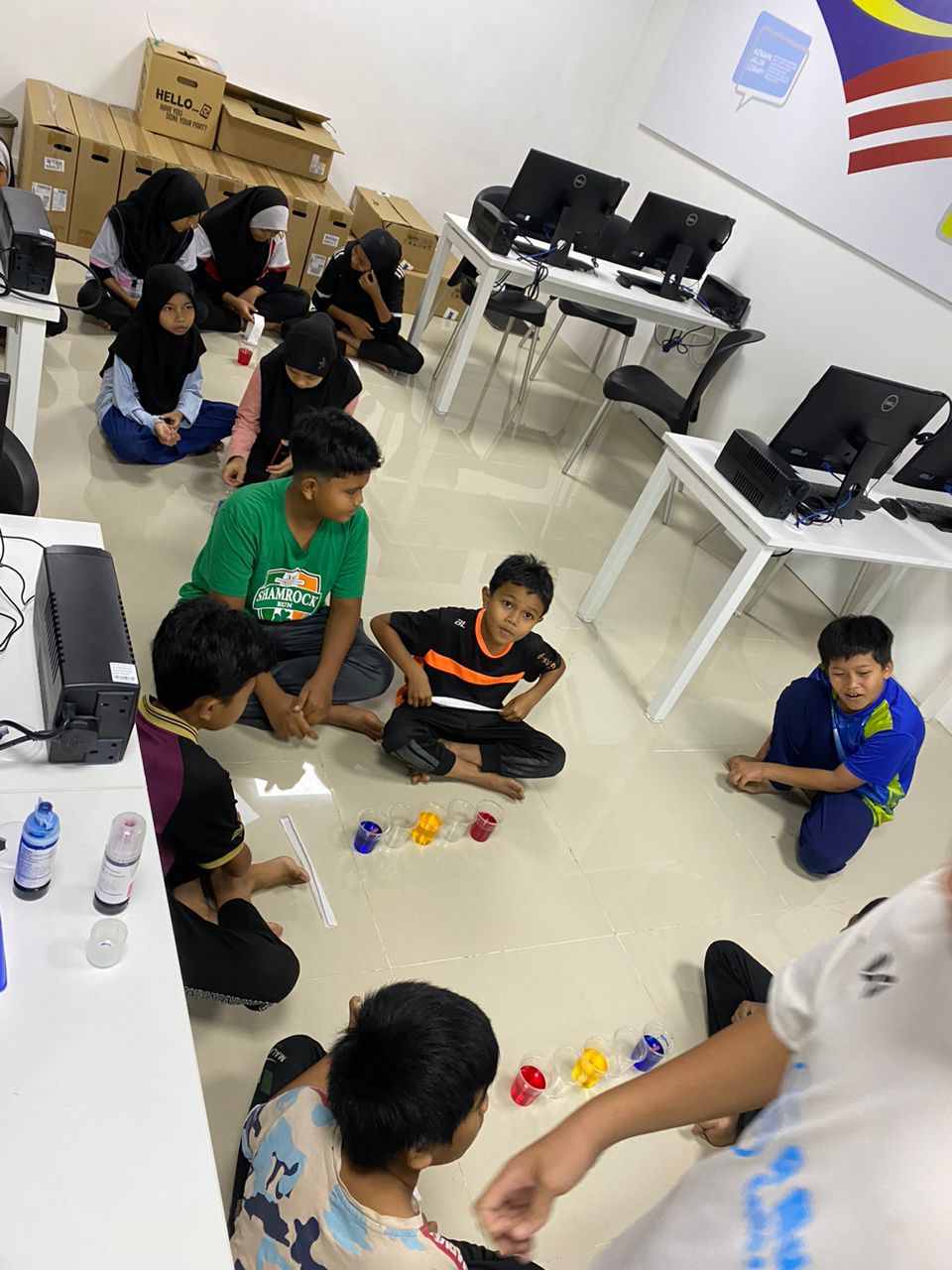 • Seterusnya diadakan aktiviti berkumpulan iaitu eksperimen rainbow walking water
