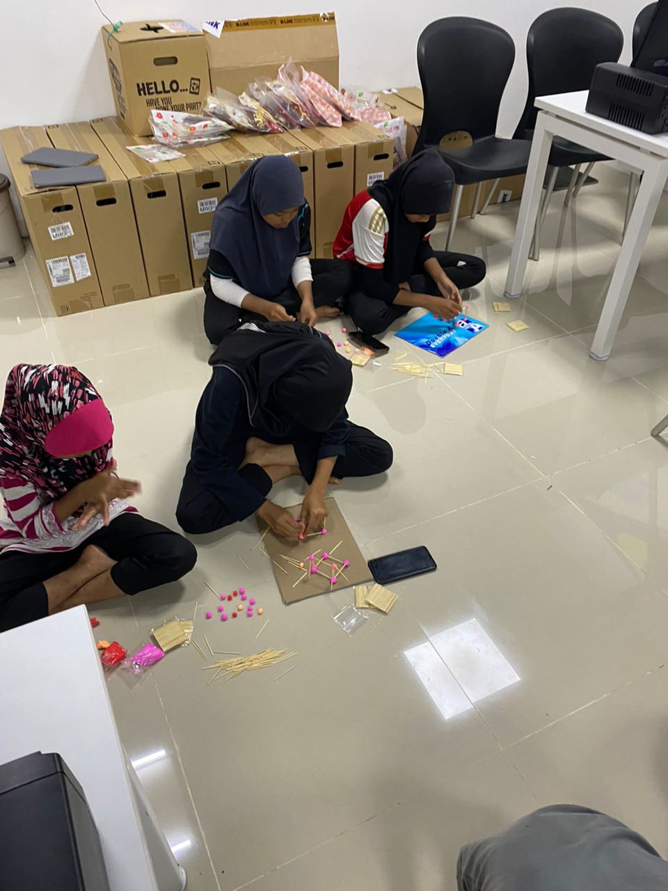 • Pada hari kedua aktiviti berkumpulan disambung semula dengan aktiviti membuat aktiviti membuat binaan menggunakan tanah liat dan pencungkil gigi.